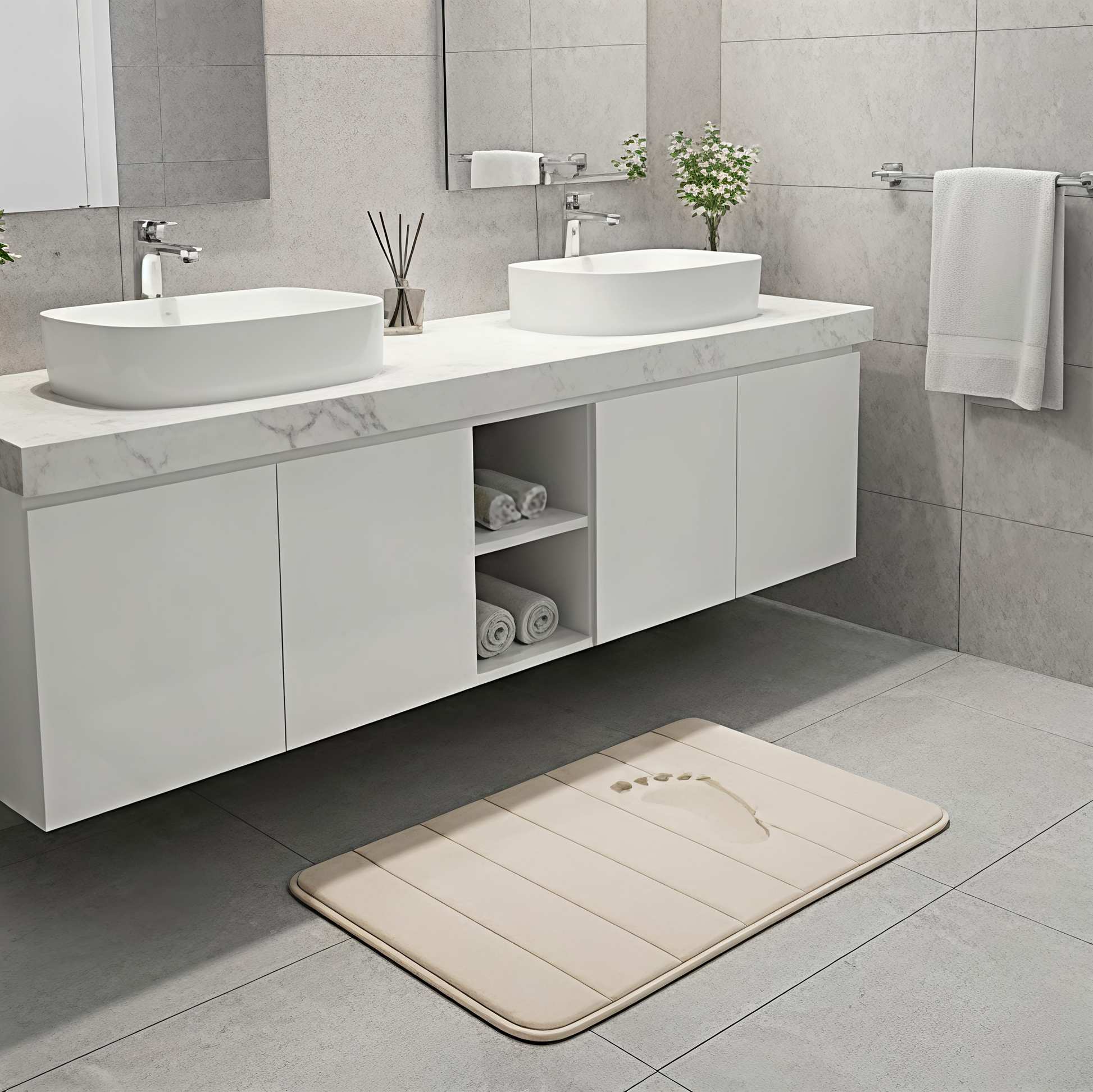 Experience the ultimate post-shower luxury with our Soft Memory Foam Bath Mat. Designed to blend sleek, minimalist aesthetics with high-performance functionality, this mat turns your bathroom into a private spa sanctuary.